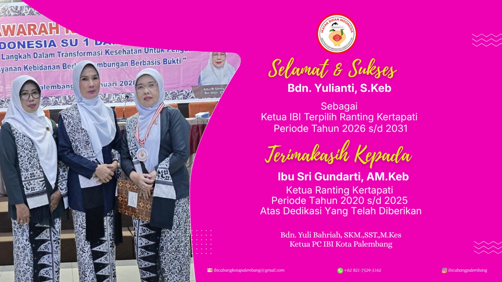 Berdasarkan hasil Musran, terpilih Bdn. Hj. Dayeri, S.Keb sebagai Ketua IBI Ranting SU 1, dan Yulianti, S.Keb sebagai Ketua IBI Ranting Kertapati. Proses pemilihan berlangsung secara demokratis dan disepakati oleh seluruh peserta musyawarah.