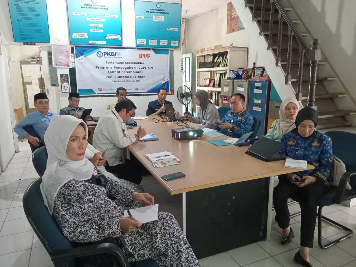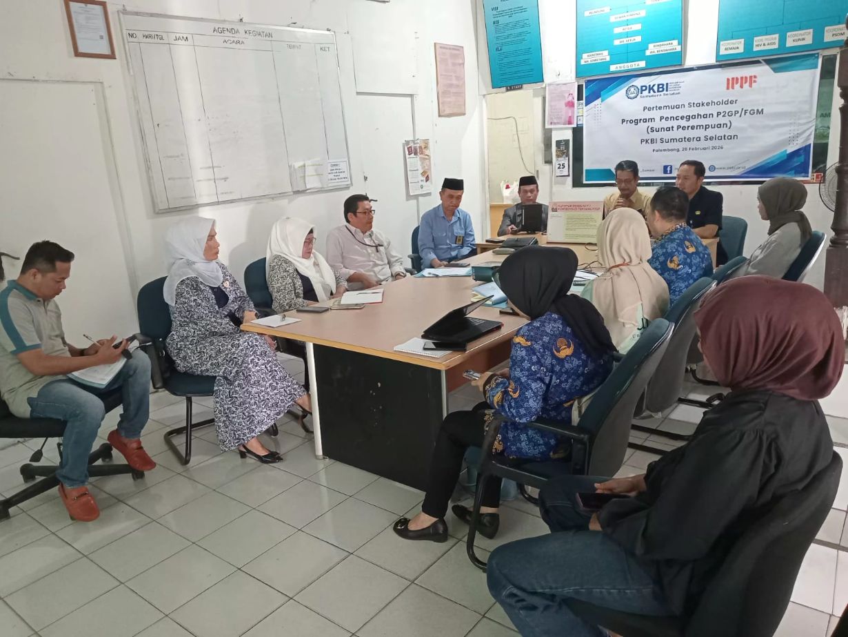 Ketua Ikatan Bidan Indonesia (IBI) Kota Palembang, Yuli Bahriah, menghadiri kegiatan Pertemuan Stakeholder Program Pencegahan Female Genital Mutilation (FGM)/Pemotongan dan Perlukaan Genitalia Perempuan (P2GP) yang diselenggarakan oleh PKBI Daerah Sumatera Selatan. Kegiatan ini dilaksanakan pada Kamis, 26 Februari 2026, bertempat di Kantor PKBI Daerah Sumatera Selatan, Palembang.
